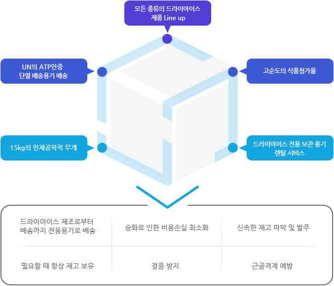 가장 빠르고 가장 효율적으로 드라이아이스를 사용할 수 있도록 최적의 물류시스템을 구축하고 있습니다.